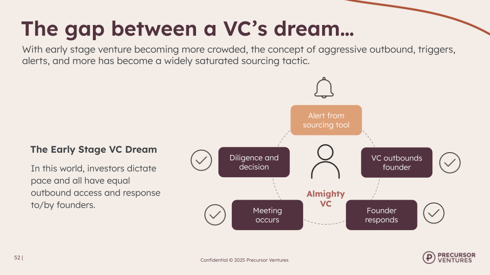 Once upon a time, firms that were effective at outbound messaging to founders had an edge, as many firms didn’t have the capabilities to execute it or any interest in making it a key part of their founder sourcing strategy.